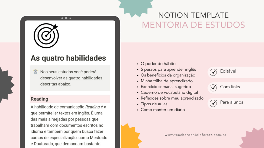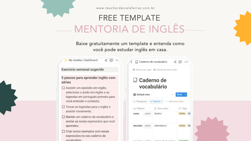 Baixe gratuitamente um template e entenda como você pode estudar inglês em casa.